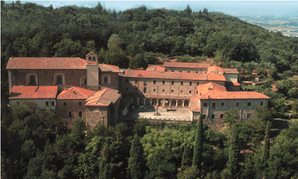 El antiguo Monasterio de Sargiano, situado a 400 metros de altitud en la ladera septentrional de la montaña de Lignano,en las colinas del Aretino, a solo 2 km de la ciudad de Arezzo, acoge la sede central del Centro del Hombre.